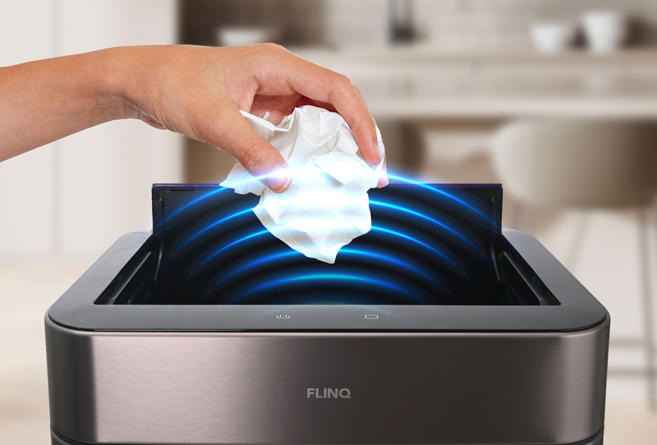 Cette poubelle à capteur de Flinq élimine non seulement les mauvaises odeurs, mais vous aide également à trier facilement les déchets et à maintenir l'hygiène.